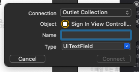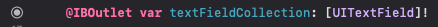 많이 보던 IBOutlet이 생기는데 데이터 타입이 UITextField Array로 되어있다.
